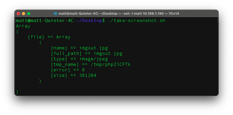 Review the screenshot in the folder you set in the take-screenshot.sh script and verify it’s there and looks correct. If that’s all good, then you can setup the script as a cron job or as a startup program. I’ll make another tutorial for how to do that stuff at a later date as well as how to setup the ingestion server.